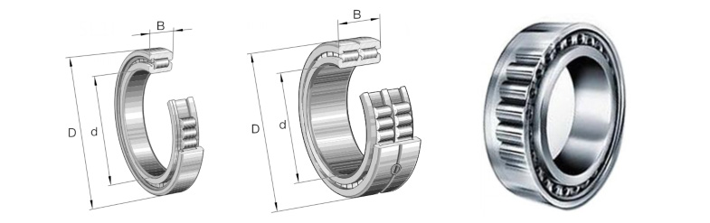 圆柱滚子轴承具有两个内圈,两个内圈由夹持圈联接在一起,不可分离,外圈有一个中挡边,可承受双向的轴向负荷,用作定位轴承。由于两列滚子之间的距离较大,还可承受倾覆力矩。外圈表面有两个止动槽,可以轴向定位。该型轴承两侧装有接触式密封圈,内装锂基脂,运行温度限于-40℃~+80℃。在一定的条件下,该型轴承无需保养,但当运行时有水汽或污染,且常为中速或高速运行,则必须补充润滑。